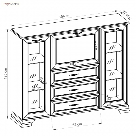 Технические характеристики Витрина 2W3S1B Tiffany Mebel Bos