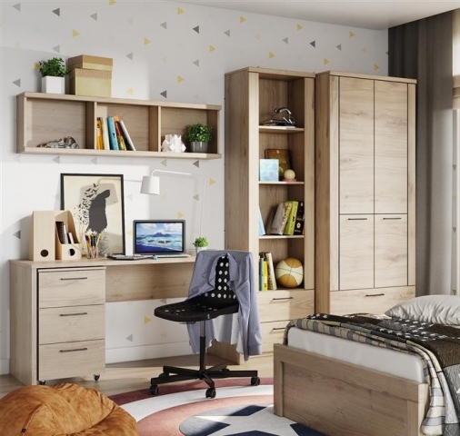 Детская стенка Doorset Mebel Bos (Дорсет Мебель Бос) - элегантная неподвластная времени от фабрики Mebel Bos, состоящая из множества модулей для обустройства детской. Корпус изготовлен из качественного ламинированного ДСП толщиной 16 мм с фасадами из качественного ламинированного ДСП толщиной 16 мм с планками из МДФ, в теплом оттенке дуб наварра со структурой необработанного дерева, с видимыми кольцами и сучками. Торцевые поверхности всех внутренних и наружных элементов изделий облицованы кромкой ПВХ 0,45 мм, придавая мебели завершенный красивый и ухоженный вид. Мебель привлекает внимание удачным сочетанием классики и простаты исполнения; теплым оттенком со структурой необработанного дерева; продолговатыми пластиковыми ручками, черного цвета; фирменными комплектующими: петлями с доводчиками и шариковыми направляющими без доводчика, обеспечивающие максимальное удобство в использовании. Стенка состоит из: открытого стеллажа, шкафа, письменного стола, мобильной тумбы и подвесной полки. Благодаря мебели Дорсет Мебель Бос Вы создадите уютную, домашнюю атмосферу – идеальную для отдыха и встреч с друзьями. Купить мебель Doorset Mebel Bos можно в нашем интернет-магазине ProMebli.ua с доставкой по всей Украине. Оплата за наличный и безналичный расчет, в кредит, рассрочку или оплату частями от ПриватБанк.