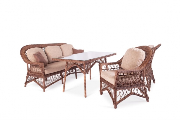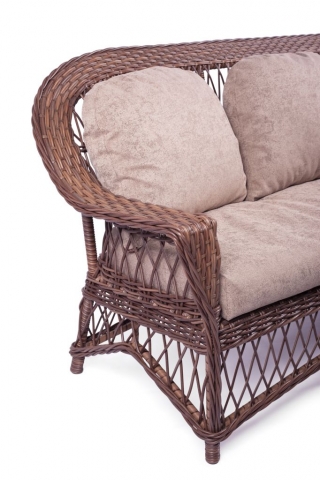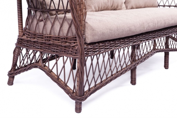 Диван из искусственного ротанга Модус Pradex легко превратит любое открытое пространство в комфортную и стильную зону отдыха. Диван дополнительно комплектуется подушкой на сидение толщиной 10 см и тремя декоративными подушками размером 60x51 см в стандартной комплектации из тентовой ткани с влагоотталкивающей пропиткой Oxford, с возможностью изготовления в всевозможных расцветках и текстурах тканей на выбор - жаккард, велюр, дралон. Высококачественная мебель обладает отличными техническими характеристиками: служит много лет, абсолютно не подвержена гниению и коррозии, не боится воды и ультрафиолета. Синтетический ротанг выдерживает t от -70°С до +80°С, он не впитывает влагу и загрязнения, легко моется обычной водой. Крепкий каркас сделан из прочных алюминиевых труб, которые выдерживают значительный вес, не деформируясь и идеально сохраняя форму. Выразительность мебели придает эксклюзивное ручное ажурное плетение в коричневом цвете, с возможностью выполнения в разнообразных цветовых решениях с разными по типу плетениями - G5, GG12, C14, B7, W17, H25, А01, ромбик. Колоритная серия Модус Pradex не оставит без внимания любители уютной английской классики и вечно актуального прованса.