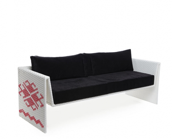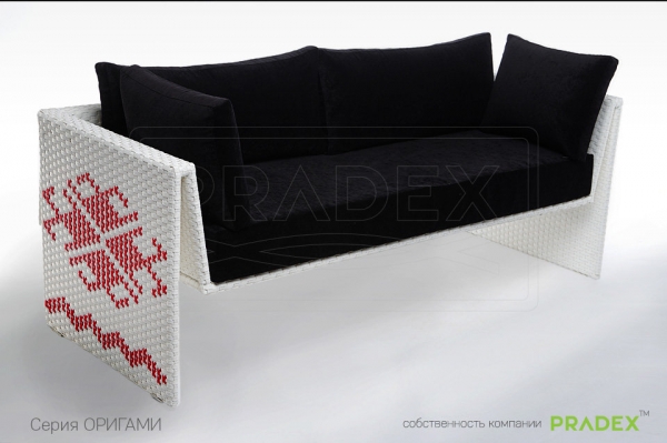 Описание Диван трехместный с декоративным орнаментом из искусственного ротанга Оригами Pradex