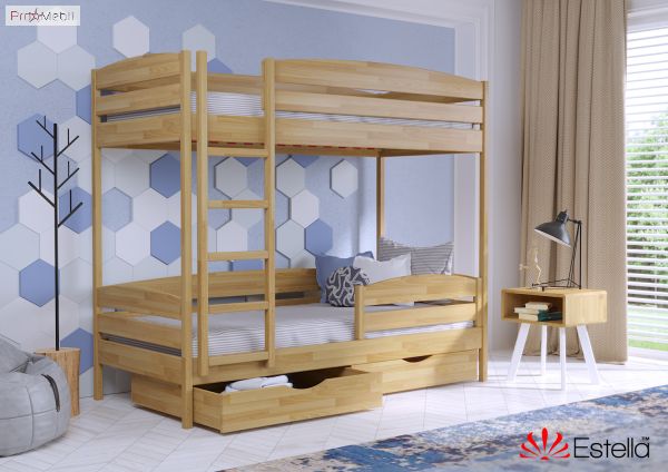 Двухъярусная кровать Дуэт Плюс Эстелла прекрасно дополнит интерьер детской, где живут двое детей, оставляя больше места для игр и учебы. Выполнена из натурального дерева щита или массива бука на выбор. Выпускается в 8 оттенках, каждый из которых идеально впишется в интерьер спальни. Главными особенностями модели являются защитная спинка на первом ярусе и бортик по всему периметру на втором, ортопедическое основание и возможность укомплектовать ящиками для белья или игрушек. Округлые формы боковин, отсутствие лишних деталей и комфорт - бесспорные достоинства кровати Дуэт Плюс Эстелла. Надежная лестница, ортопедическое основание, крепкие стойки из буковой древесины толщиной 40х40 мм, практичность и долговечность в использовании станут главным критерием при выборе данной модели. Кровать комплектуется прочными гнутыми ламелями из ламинированной фанеры толщиной 8 мм. Благодаря особой изогнутой форме, ламели обеспечивают дополнительный ортопедический эффект и комфорт. Спальное место под матрас в размере 80х190 см обеспечит комфортный сон для одного ребенка или взрослого.