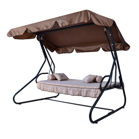 Качели садовые Графиня бежевая клетка Vitan - вариант премиум класса для отдыха в саду украинской фабрики Vitan. Каркас данной модели выполнен из стальных труб нескольких диаметров, основным из которых есть труба диаметром 38 мм. Основа сиденья пружинный блок, оригинальность состоит в том, что выполнен этот блок методом плетения металлической проволоки, что обеспечивает надежность и удобство при сидении. Весь стальной каркас покрыт полимерным покрытием, для стойкости от коррозии, а также для стильности внешнего вида. Данная конструкция - качели Графиня полностью разбирается на отдельные детали, что очень удобно для хранения и транспортировки. Для сборки есть детальная инструкция, где схематически объясняется, как собрать, или разобрать качели. Тент крыши из специальной влагостойкой материи, под названием Полиэстер, сиденье изготовлено из пружинного блока и стальной проволоки. На сиденье мягкий матрас из поролона 50 мм, ткань Бязь Голд - 100% хлопок. На качели могут разместиться 3-4 взрослых человек, а если с маленькими детками то и все 5-6! Максимально-допустимая нагрузка до 280 кг. Широкое сиденье размером 171х53.5 см позволит удобно расположиться на качели и насладиться отдыхом в ней. Габаритные размеры данной модели Графиня: высота – 170 см, ширина – 212 см, глубина – 154 см.