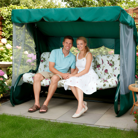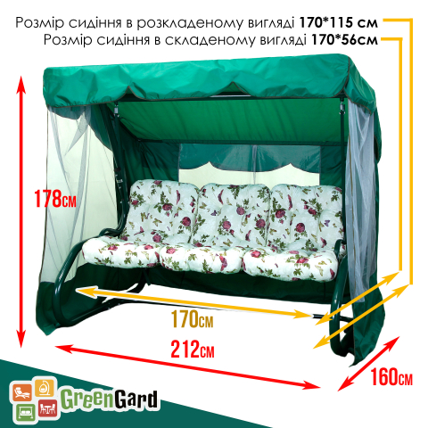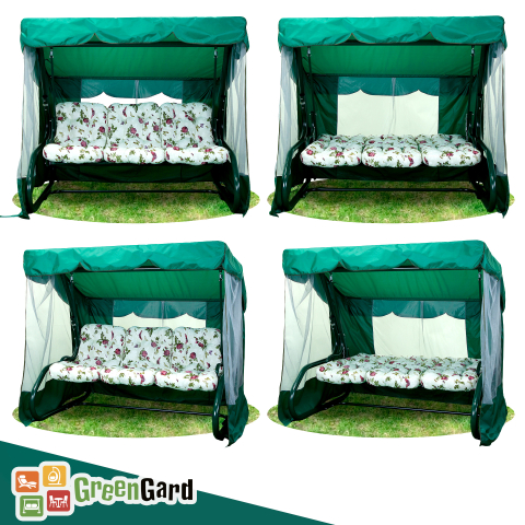 каркас - зеленый, текстиль - светлый, цветы и бабочки, тент - зеленый |