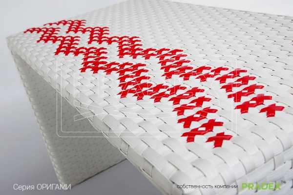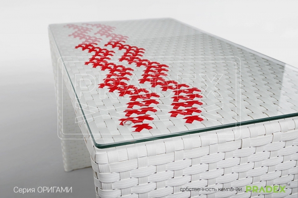 Дизайнерский стол Оригами Pradex – это стильная мебель из искусственного ротанга, отлично подойдет для меблировки ресторанов, бизнесс-центров, элитных пансионатов и загородных домов, зимних садов, домашних оранжерей, веранд частных особняков. Столик с первого взгляда поражает своей продуманностью и лаконичностью и напоминает о древнеяпонском искусстве оригами: форма стола похожа на умело сложенный тонкий листок бумаги в виде буквы П с декоративным орнаментом. Фирменная тонкость этой плетеной модели, отразившаяся в названии, не только задает стиль пространству, но и позволяет значительно экономить место в малогабаритных помещениях. Выразительность мебели придает эксклюзивное ручное плетение в белоснежном цвете, с возможностью выполнения в разнообразных цветовых решениях с разными по типу плетениями - L12, A01. Дизайнерская серия Оригами Pradex отличный выбор для людей с тонким вкусом!