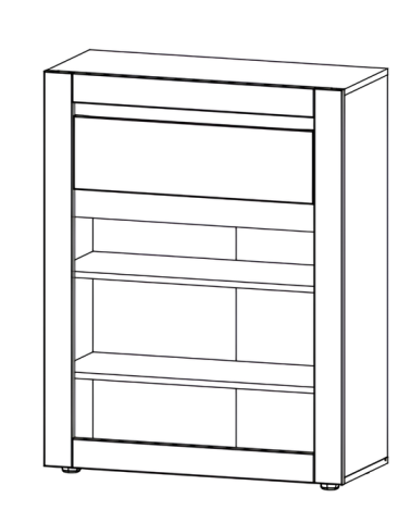 комод содержит один выдвижной ящик и одно закрытое отделение с полками внутри |