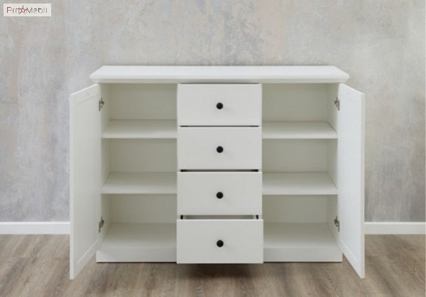 Комод 2D4S Brandson Mebel Bos удачно совмещает в себе функциональность и модный стильный дизайн и предназначена для обустройства изысканной гостиной, столовой или спальни. Внутреннее пространство комода наполнено четырьмя выдвижными ящиками и двумя закрытыми отделениями с двумя полочками внутри каждого. Корпус изготавливается из качественного ламинированного ДСП, фасады из ламинированного МДФ с рамкой МДФ, в универсальном оттенке белого цвета, который создаст в доме уютную, теплую обстановку. Мебель Brandson Mebel Bos привлекает: стильным дизайном; простотой форм; рамочными фасадами и декоративными резными карнизами; миниатюрными металлическими точечными ручками; фирменными комплектующими: роликовые направляющие и петли без доводчика обеспечивают максимальное удобство в использовании. Коллекция Брендсон Мебель Бос принесет свет, современность и элегантность в ваш дом.