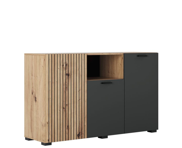Элегантный комод 3Д Зара Світ Меблів сочетает в себе современные, лофтовые и индустриальные элементы, создавая стильную и уютную атмосферу в гостиной, наполняя пространство динамикой и вдохновением, делая интерьер современным и выразительным. Комод оснащен одной открытой нишей и тремя закрытыми отделениями с полками внутри, что позволяет удобно хранить одежду, аксессуары и другие предметы. Особое очарование комоду придает выраженные на фасадах вертикальные планки из шелкографии; контрастное сочетание оттенков, теплый оттенок "дуб артизан" с его природной текстурой гармонично сочетается с глубоким насыщенным "антрацитом"; два варианта открывания — продолговатые ручки на одних фасадах и современная система Push to Open на других; надежная фурнитура, обеспечивающая плавность и комфорт в эксплуатации. Мебель Зара Світ Меблів создаст уютное и продуманное пространство, где каждая деталь способствует созданию гармоничного и современного интерьера, наполненного комфортом и атмосферой тепла, в котором приятно отдыхать и проводить время.