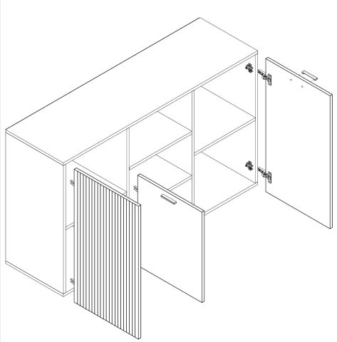 комод содержит одну открытую нишу и три закрытых отделения с полочками внутри |