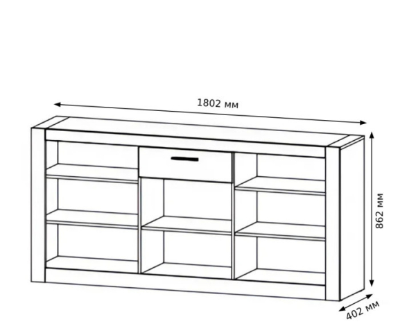 комод содержит один выдвижной ящик и три закрытых отделения с полками внутри |