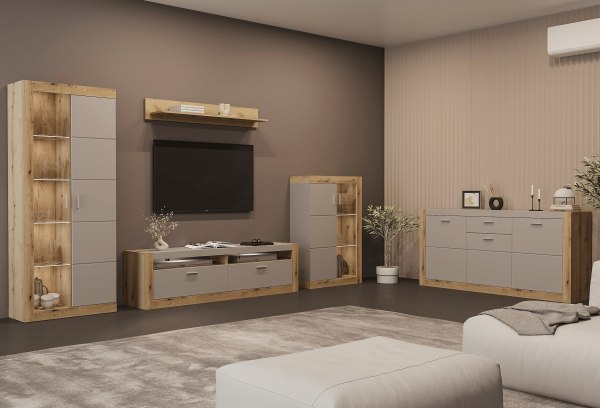 Комод 3Д1Ш Палермо Сокме создает атмосферу покоя и уюта, наполняя пространство гостиной ощущением сбалансированной современности и подчеркивая изысканный вкус владельцев. Комод содержит один выдвижной ящик и три закрытых отделения с полками внутри, что позволяет удобно хранить как мелкие вещи, так и более габаритные предметы, сохраняя порядок и аккуратный внешний вид. Комод покоряет вниманием к деталям, объединяя стиль и функциональность в едином утонченном образе: горизонтальное фрезерование фасадов подчеркивает современную эстетику, насыщенный оттенок элегантного серого в сочетании с природной текстурой дерева наполняет интерьер теплом и природной гармонией, изящные серебристые ручки добавляют нотку элегантности, прочное основание гарантирует устойчивость конструкции, а качественная фурнитура обеспечивает плавность и надежность в использовании. Палермо Сокме - мебель, которая подчеркивает вкус, создает гармоничную атмосферу и вдохновляет каждый день.
