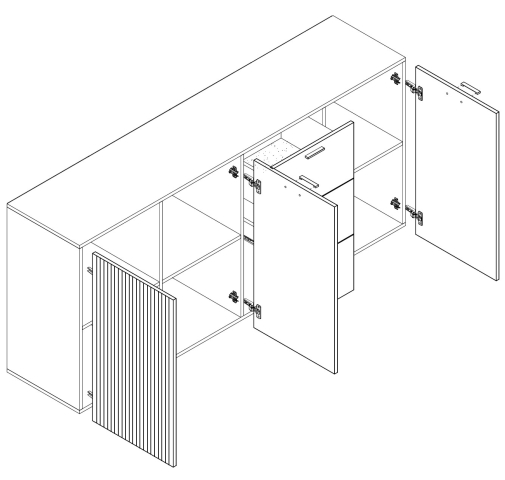 комод содержит три выдвижных ящика и три закрытых отделения с полочками внутри |