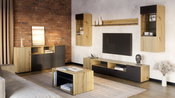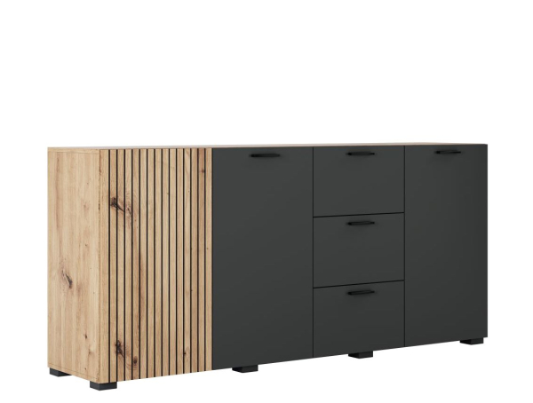 Элегантный комод 3Д3Ш Зара Світ Меблів сочетает в себе современные, лофтовые и индустриальные элементы, создавая стильную и уютную атмосферу в гостиной, наполняя пространство динамикой и вдохновением, делая интерьер современным и выразительным. Комод оснащен тремя вместительными выдвижными ящиками и тремя закрытыми отделениями с полками внутри, что позволяет удобно хранить одежду, аксессуары и другие предметы. Особое очарование комоду придает выраженные на фасадах вертикальные планки из шелкографии; контрастное сочетание оттенков, теплый оттенок "дуб артизан" с его природной текстурой гармонично сочетается с глубоким насыщенным "антрацитом"; два варианта открывания — продолговатые ручки на одних фасадах и современная система Push to Open на других; надежная фурнитура, обеспечивающая плавность и комфорт в эксплуатации. Мебель Зара Світ Меблів создаст уютное и продуманное пространство, где каждая деталь способствует созданию гармоничного и современного интерьера, наполненного комфортом и атмосферой тепла, в котором приятно отдыхать и проводить время.