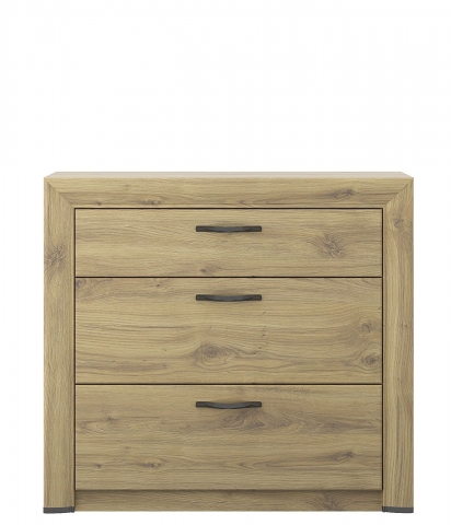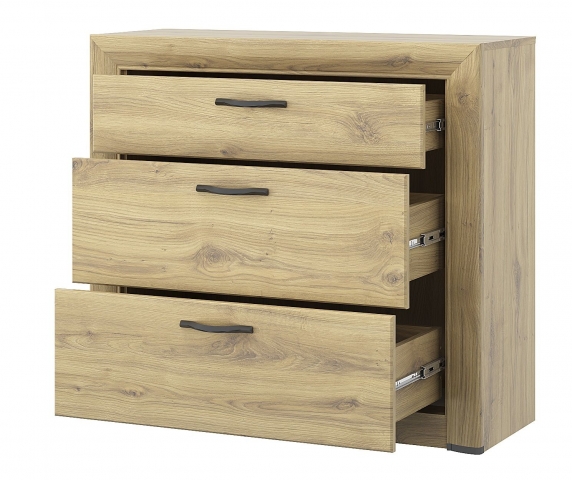 Комод 3S Sapori Mebel Bos в элегантном и стильном решении, добавит богатство и шарм интерьеру гостиной, столовой, спальне и даже прихожей. Комод содержит три выдвижных ящика. Коллекция очарует Вас своим дизайном; простыми формами; удивительным теплым цветовым исполнением "дуб наварра"; декоративными рамами по периметру фасадов, придавая массивности и элегантности; слегка изогнутыми, металлическими ручками черного цвета; устойчивыми, незаметными пластиковыми ножками; фирменными комплектующими. Мебель Сапори Мебель Бос несомненно создаст спокойную, гармоничную атмосферу, которая привносет в интерьер чувство расслабленности и уюта.