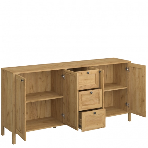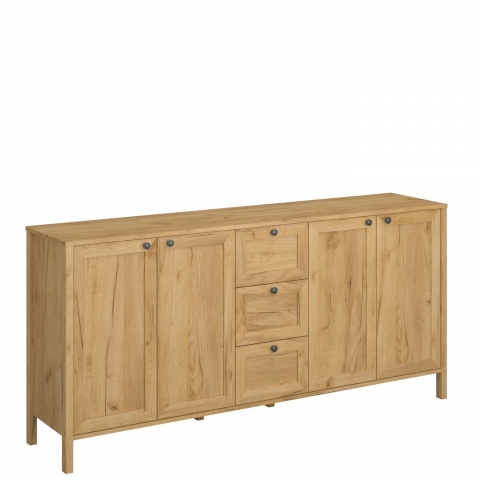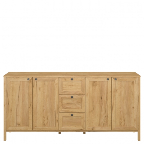 Комод 4D3S Кларк Кларк - сочетание стиля модерн с нотками кантри, от украинской мебельной фабрики VMV Holding для обустройства гостиной, а также его можно разместить в столовой, рабочем кабинете или даже в офисе. Комод содержит три выдвижных ящика и два закрытых отделения с полкой в каждом. Корпус изготавливается из высококачественного ламинированного ДСП Kronospan толщиной 16 мм, фасадные части из ламинированного ДСП Kronospan толщиной 16 мм с элементами МДФ в приятном древесном оттенке дуб крафт золотой. Уникальности комоду придают безупречная эстетика; естественная теплота древесного оттенка; небольшие темные ручки круглой формы; рамочные фасады; выразительные массивные боковые планки, плавно переходящие в высокие ножки; фирменные комплектующие. Благодаря мебели Klark VMV Вы создадите в интерьере уютную атмосферу и по-домашнему семейное тепло.