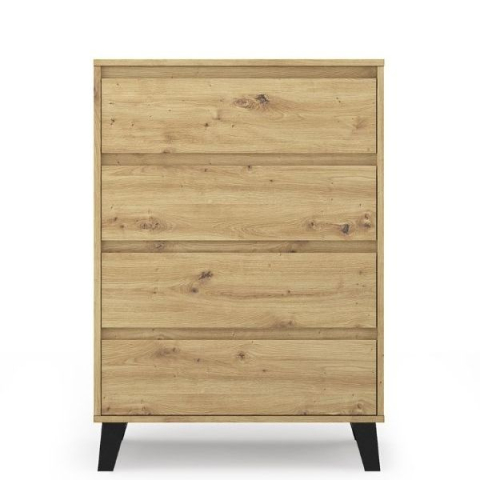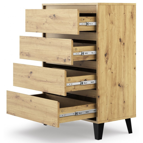 Комод 4S/70 Borg дуб артизан Mebel Bos — выразительный и стильный, создан с учетом Ваших потребностей, ритма жизни и индивидуального вкуса, чтобы гармонично вписаться в уютную гостиную, спокойную спальню или яркую детскую комнату, придавая пространству особый акцент, наполняя его теплом, практичной элегантностью и атмосферой продуманного комфорта. Комод содержит четыре выдвижных ящика, обеспечивая удобное хранение повседневных вещей и помогая поддерживать порядок в интерьере. Корпус и фасадные элементы изготовлены из прочного ламинированного ДСП толщиной 16 мм, в теплом оттенке дуб артизан. Особое внимание уделено деталям: четкие геометрические формы подчеркивают характер комода и его современное звучание, отсутствие ручек компенсируется изящными фрезерованными выемками, которые добавляют фасадам оригинальности и чистоты линий, высокие, изящные ножки придают визуальную легкость, словно комод парит над полом, одновременно сохраняя высокую устойчивость, а качественная фурнитура, обеспечивает мягкость и плавность в использовании. Borg Mebel Bos — мебель с характером, создающая завершенный образ помещения, наполняющая пространство уютом, ощущением порядка и вдохновения, становясь неотъемлемой частью вашего дома и отражая ваше стремление к стилю, функциональности и эстетике в каждой детали.