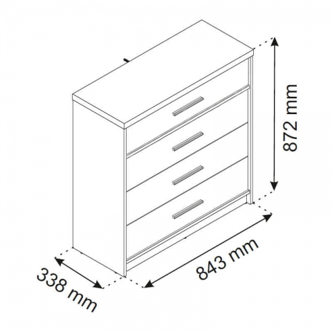 комод содержит четыре выдвижных ящика |