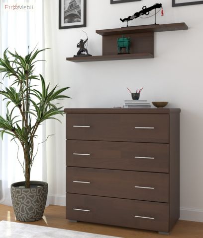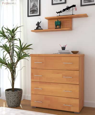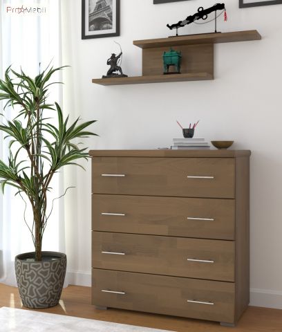 Комод Эксклюзив 4Ш Арбор Древ из натурального дерева высшего сорта, произведенный украинской фабрикой Арбор Древ. Комод гармонично впишется в интерьер спальни, гостиной комнаты и даже детской, и станет полезным функциональным предметом мебели, позволяющим разместить необходимые вещи. Внутреннее пространство комода наполнено четырьмя выдвижными ящиками. Комод выполнен из натурального дерева щита бука или сосны на выбор, и покрыт гипоаллергенным лаком итальянского производства, каркас ящиков - ламинированное ДСП, задняя стенка и днище ящиков – ДВП. Главными особенностями комода являются современный дизайн; оригинальная фактура, выполненная самой природой; простые прямоугольный формы; длинные хромированные ручки; прочное основание, способствующее максимальной устойчивости; фирменные комплектующие телескопические направляющие полного выдвижения.