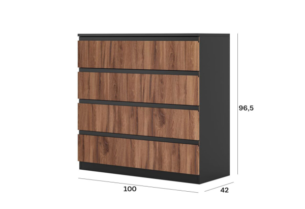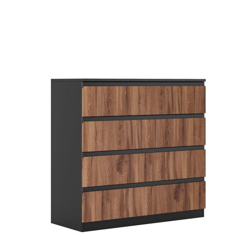 Комод 4Ш Фрида Світ Меблів смелое сочетание современного стиля и индустриальной эстетики с нотками классической элегантности, который привнесет в интерьер выразительность, контрастность и утонченную гармонию, позволяя создать уникальное пространство в любой комнате. Комод включает четыре просторных выдвижных ящика, предлагая безупречную организацию хранения, позволяя легко сортировать вещи в зависимости от ваших потребностей. Комод поражает строгим минимализмом, где лаконичные линии и отсутствие традиционных ручек создают атмосферу сдержанной элегантности, а фрезерованные выемки на фасадах с контрастными планками становятся стильными акцентами, при этом прочное основание гарантирует устойчивость, а фирменные комплектующие обеспечивают плавность и лёгкость в эксплуатации. Мебель Фрида дуб ливорно Світ Меблів — настоящее произведение искусства, которое наполнит пространство глубиной и выразительностью, создавая атмосферу уюта и гармонии в любом уголке вашего дома.