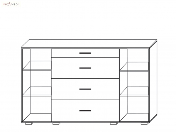 комод содержит два закрытых отделения, с полочками внутри и четыре выдвижных ящика |
