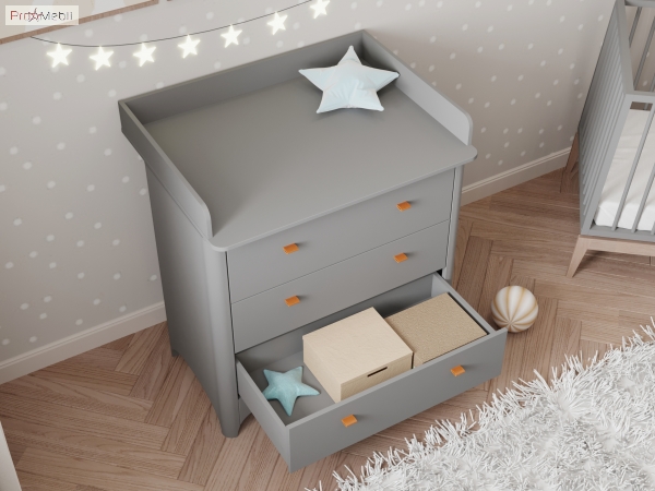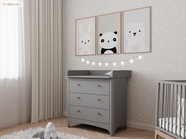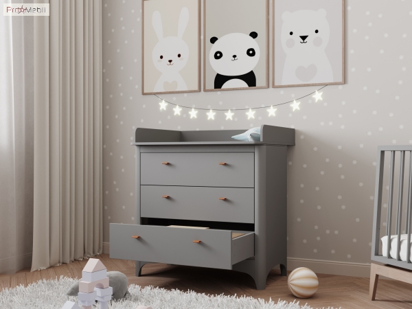 Удобный и вместительный комод Classic Leander — необходимый предмет мебели в детской комнате. Он не только красиво смотрится в интерьере, но и выполняет ряд важных функций: в нем возможно аккуратно и компактно хранить вещи, раскладывать их в ящиках так, чтобы все необходимое находилось под рукой. Внутреннее пространство комода наполнено тремя выдвижными ящиками. Корпус и фасадные части изготовлены из МДФ толщиной 16 мм и покрыты износостойким защитным лаком, внешне окрашены матовой эмалью серого цвета. Мебель Classic Leander привлекает внимание уникальным дизайном с минимумом декора; благодарным оттенок; мягкими, закругленными углами в целях безопасности; коричневыми ручками из натуральной кожи; выразительными высокими ножками; фирменными комплектующими. Мебель Classic Leander выглядят очень изысканно и благородно, отличается удобством, практичностью, универсальностью, безопасностью, которая позволяет создать комфортный интерьер как для мальчика, так и для девочки.