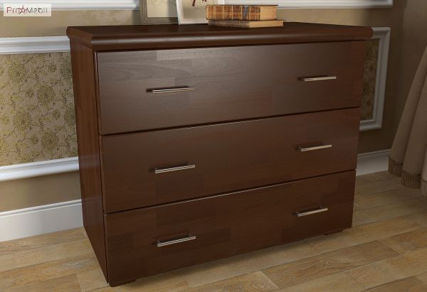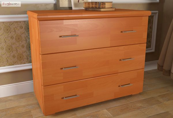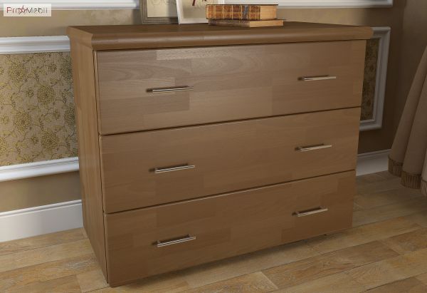 Комод Эксклюзив Арбор Древ из натурального дерева высшего сорта, произведенный украинской фабрикой Арбор Древ. Комод гармонично впишется в интерьер спальни, гостиной комнаты и даже детской, и станет полезным функциональным предметом мебели, позволяющим разместить необходимые вещи. Внутреннее пространство комода наполнено тремя выдвижными ящиками. Комод выполнен из натурального дерева щита бука или сосны на выбор, и покрыт гипоаллергенным лаком итальянского производства, каркас ящиков - ламинированное ДСП, задняя стенка и днище ящиков – ДВП. Главными особенностями комода являются современный дизайн; оригинальная фактура, выполненная самой природой; простые прямоугольный формы; длинные хромированные ручки; прочное основание, способствующее максимальной устойчивости; фирменные комплектующие телескопические направляющие полного выдвижения.