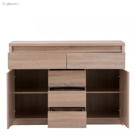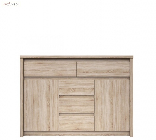 Комод KOM 2D5S Нортон ВМВ сдержанный с ненавязчивым дизайном предназначена для обустройства изысканной гостиной, столовой, спальни, детской комнаты, прихожей или рабочего кабинета. Комод имеет пять выдвижной ящик и два закрытых отделения с полочкой внутри каждого, где прекрасно можно хранить различные предметы или вещи. Корпус изготавливается из высококачественного ламинированного ДСП, фасады - из высококачественного ламинированного ДСП с элементами МДФ в теплом оттенке «дуб сонома», с выразительным природным орнаментом, создающим впечатление цельного массива дерева. Мебель Norton VMV гармонично дополнит любой современный интерьер для благоприятной обстановки и максимального удобства.