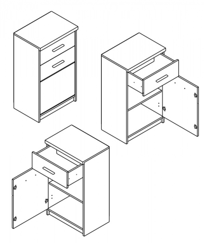 комод содержит один выдвижной ящик и одно закрытое отделение, где расположена одна полочка |