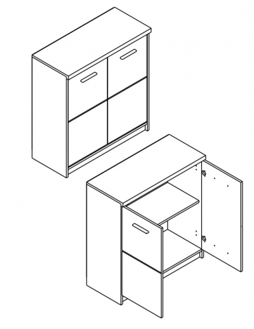 комод содержит одно закрытое отделение с двумя дверями и с полкой внутри |