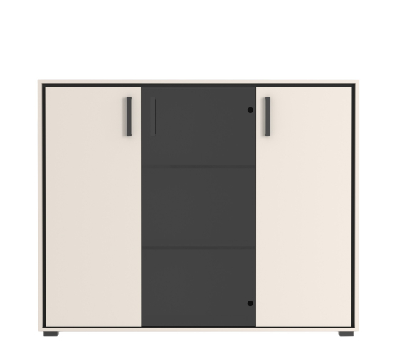 Комод KOM2D1W Прайм от Gerbor — стильное и продуманное решение для офиса, где функциональность сочетается с эстетикой, создавая комфортную и организованную рабочую среду. Комод содержит три закрытых отделения с двумя полками в каждом. Центральная дверь из тонированного закаленного стекла придаёт конструкции визуальную лёгкость и делает акцент на изысканности. Боковые отделения оснащены глухими фасадами, что позволяет скрыть личные вещи и поддерживать безупречный порядок. Комод восхищает выразительной современной эстетикой, где утонченная палитра «кашемира» и глубокого «черного» сочетается с четкой геометрией форм, изящные ручки Etera Plast, устойчивые ножки и премиальная фурнитура, превращают каждый элемент в гармоничную часть цельного пространства, наполненного стилем, комфортом и функциональностью. Прайм Gerbor — инструмент для создания стильного и продуманного офиса, где каждая деталь способствует результативной работе, вдохновляет и отражает респектабельный облик компании.
