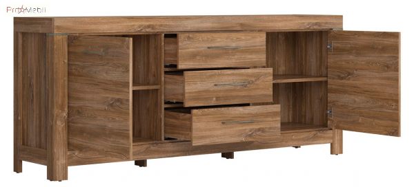Оригинальный комод KOM2D3S/9/20 Герман ВМК (БРВ) с пopaжaющей эффeктностью от украинской мебельной фабрики БРВ Украина, прекрасно дополнит интерьер спальни, столовой, гостиной, домашнего кабинета и прихожей. Комод содержит три выдвижных ящика и два закрытых отделения с полкой в каждом. Мебель Герман БРВ отличается массивными формами; комбинацией форм с строгими прямыми линиями; контрастным цветовым исполнением; металлическими вставками и удлиненными металлическими ручками стального цвета, создавая общую стилистику; фирменными комплектующими: качественной немецкой фурнитурой Hettich и телескопическими направляющими полного выдвижения, гарантирующие надежность и долговечность изделиям. Система Герман ВМК (БРВ) - создаст неповторимый домашний уют, усовершенствовав Ваш дом, подарив положительные эмоции не на год, а на десятки лет.