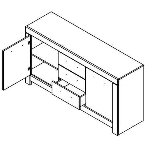 комод содержит три выдвижных ящика и два закрытых отделения с полкой в каждом |