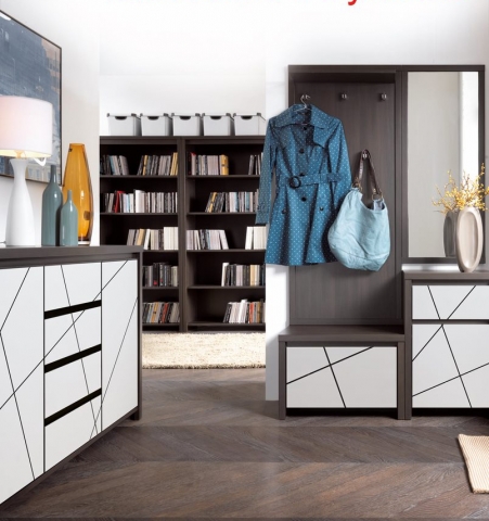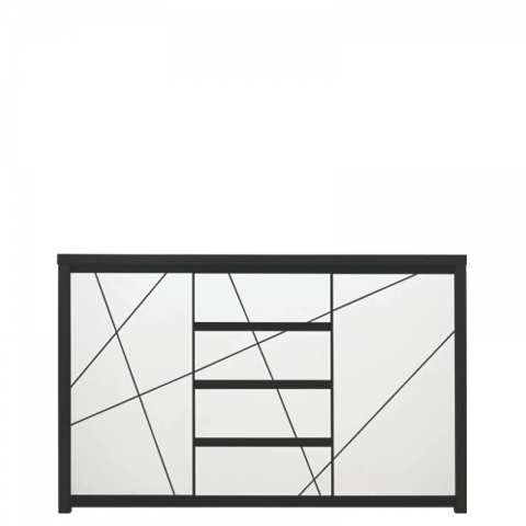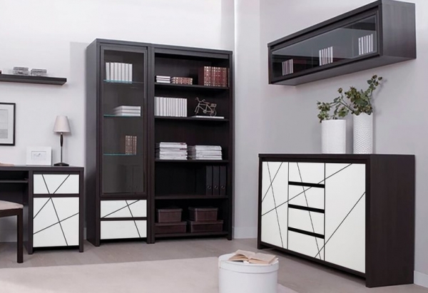 Комод KOM2D4S Каспиан белый снег с нестандартной коллекции от фабрики БРВ Украина для обустройства спальни, а также его можно поместить в гостиной, столовой, рабочем кабинете и даже в прихожей. Комод содержит по центру - четыре выдвижных ящика, по бокам расположены два закрытых отделения с полкой внутри каждого. Корпус изготовлен из качественного ламинированного ДСП, фасадные части изготовлены из качественного ламинированного МДФ в необычном сочетании выразительного темного корпуса в цвете «дуб милано темный» с белоснежными фасадами цвета «белый снег». Комод привлекает внимание уникальным и инновационным дизайном; эффектным внешним видом; геометрическим оригинальным фрезерованным узором, создавая оригинальный эффект; минималистическим стилем, где полное отсутствие ручек, а вместо них используется фрезеровка на верхнем торце фасада; фирменными комплектующими: роликовыми направляющими, которые обеспечивают максимальный комфорт в использовании. Мебель Каспиан ВМК (БРВ) добавит вашему интерьеру элегантности и шика, с дуновением современности.