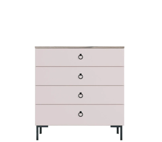 Комод KOM4S Симпл кашемир ВМК (БРВ) — энергичный и выразительный, с урбанистическим характером, созданный специально для обустройства подростковой комнаты, чтобы пространство отражало индивидуальность, стиль и внутреннюю свободу, сочетая высокую функциональность и визуальную легкость с атмосферой, в которой приятно не только учиться и отдыхать, но и мечтать, творить, быть собой. Комод содержит четыре выдвижных ящика, которые идеально подойдут для хранения одежды, школьных принадлежностей, любимых вещей и личных мелочей, без которых не обходится ни один подростковый день. Комод привлекает внимание с первого взгляда – своим стильным индустриальным обликом; выразительными линиями; лаконичными формами и точной геометрией; цветовым тандемом, который притягивает своей светлой эстетикой: мягкий тон кашемира изысканно сочетается с натуральной текстурой светлого вяза либерти, создавая в интерьере ощущение уюта, воздушности и спокойной уверенности; трендовыми черными ручками-кольцами, добавляющими брутальной графичности; высоким основанием на металлических ножках, визуально облегчающим конструкцию; надежной фурнитурой. Симпл ВМК (БРВ) – эффектное решение для тех, кто устал от скучных решений и хочет превратить комнату в яркое, живое и по-настоящему личное пространство.