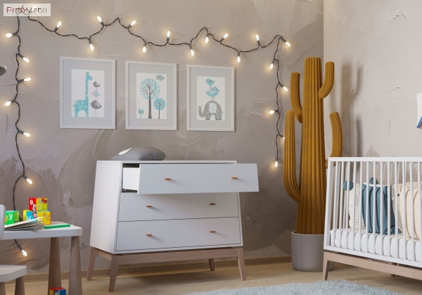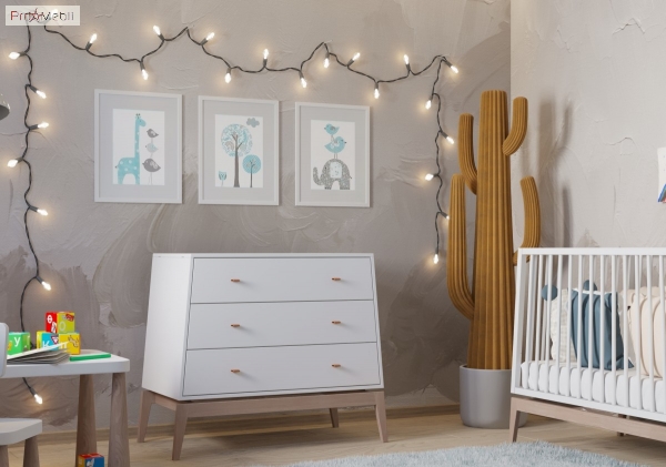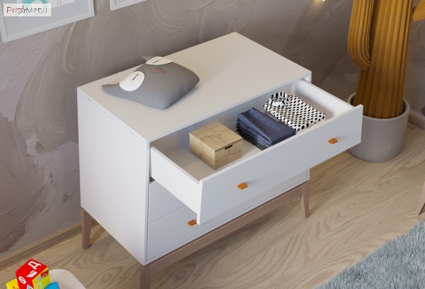 Необычный и универсальный комод Luna Leander — необходимый предмет мебели в детской комнате. Он не только красиво смотрится в интерьере, но и выполняет ряд важных функций: в нем возможно аккуратно и компактно хранить вещи, раскладывать их в ящиках так, чтобы все необходимое находилось под рукой. Внутреннее пространство комода наполнено тремя выдвижными ящиками. Корпус и фасадные части изготовлены из МДФ толщиной 16 мм и покрыты износостойким защитным лаком, внешне окрашены матовой эмалью белого цвета. Мебель Luna Leander привлекает внимание уникальным легким дизайном; строгими линиями и конусной формой; коричневыми ручками из натуральной кожи; высокими ножками из лакированного массива бука; фирменными комплектующими. Мебель Luna Leander отличается чудесным внешним видом, тщательно продуманными деталями, практичностью, универсальностью и безопасностью, создавая комфортный интерьер, как для мальчика, так и для девочки.