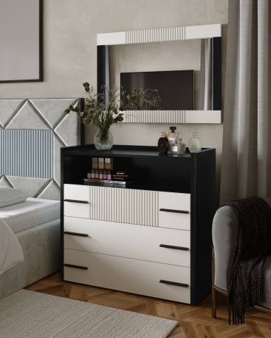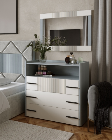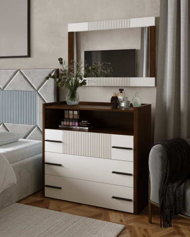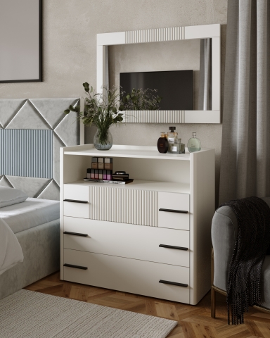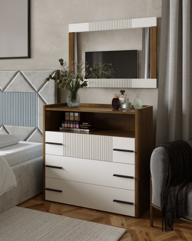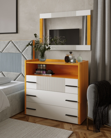 Комод Модерн Арбор Древ из натурального дерева высшего сорта, произведенный украинской фабрикой Арбор Древ. Комод гармонично впишется в интерьер спальни, гостиной комнаты и даже детской, и станет полезным функциональным предметом мебели, позволяющим разместить необходимые вещи. Внутреннее пространство комода наполнено тремя выдвижными ящиками и одной открытой нишей. Комод выполнен из натурального дерева щита бука или сосны на выбор, и покрыт гипоаллергенным лаком итальянского производства, каркас ящиков - ламинированное ДСП, задняя стенка и днище ящиков – ДВП. Главными особенностями комода являются современный дизайн; оригинальная фактура, выполненная самой природой; простые прямоугольный формы; длинные ручки; прочное основание, способствующее максимальной устойчивости; фирменные комплектующие телескопические направляющие полного выдвижения.