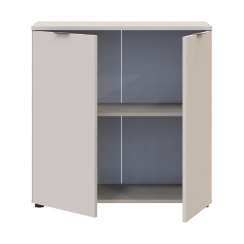 комод двухдверный содержит одно закрытое отделение с полкой внутри |