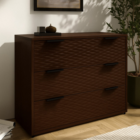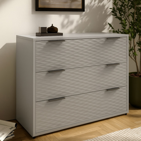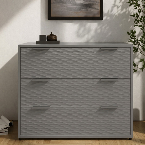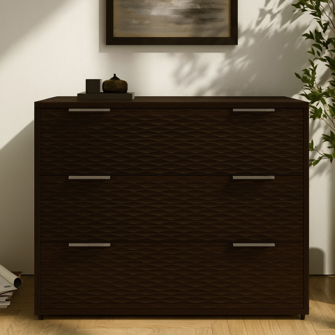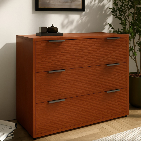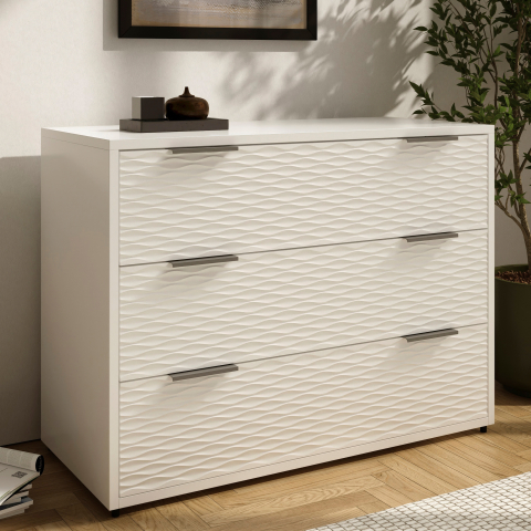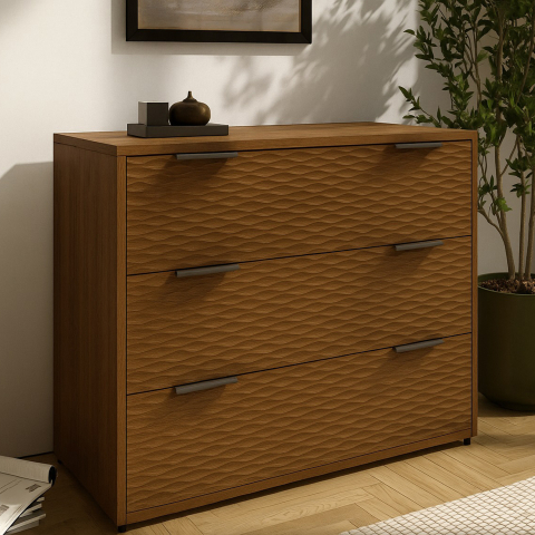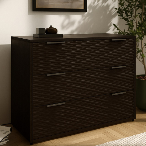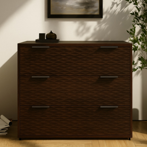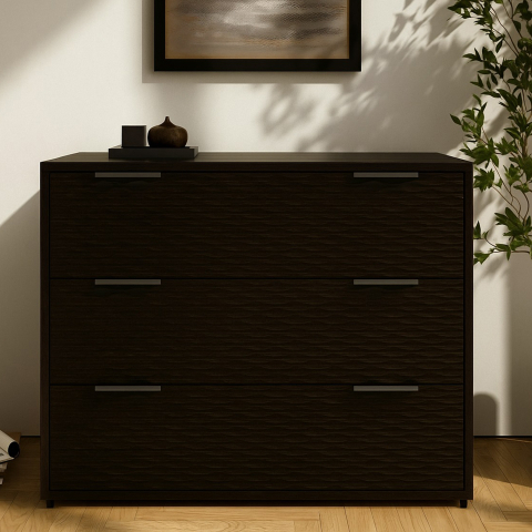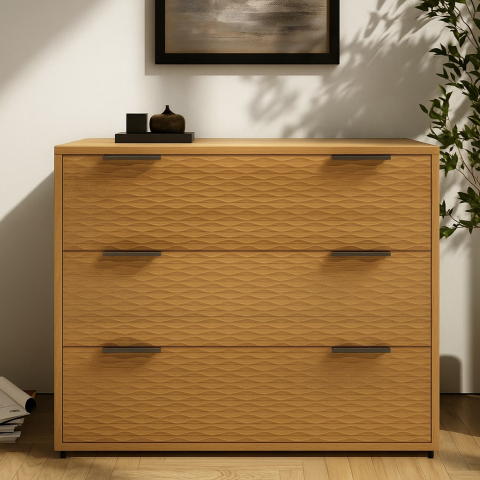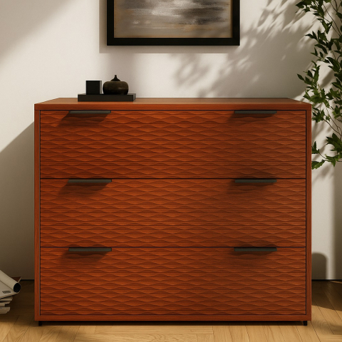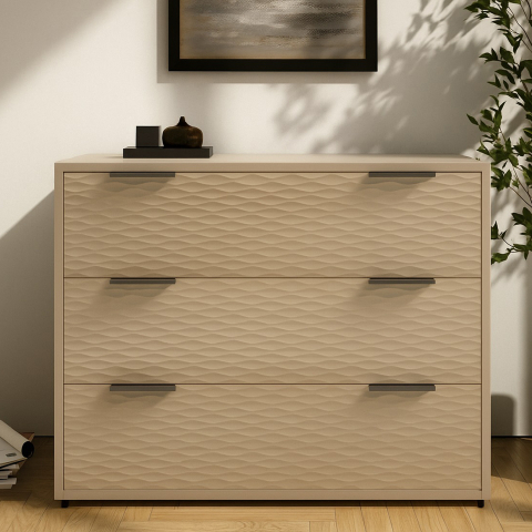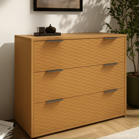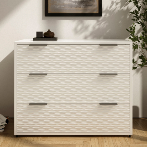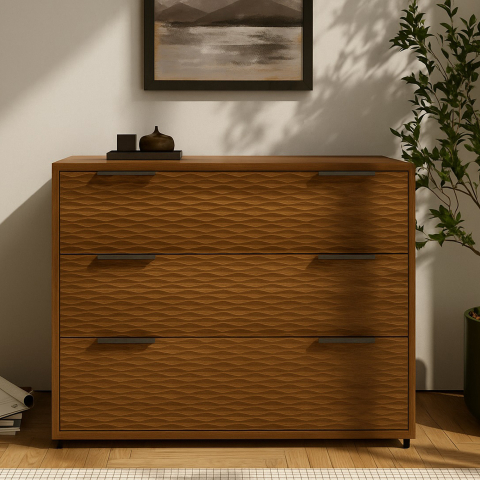 Комод Шарм Арбор Древ выразительное сочетание современной лаконичности и мягкой пластики, которое сразу притягивает внимание за счет рельефных фасадов и светлой, спокойной палитры. Модель органично вписывается в интерьер спальни, гостиной и детской комнаты, становясь не только функциональным элементом, но и частью общей атмосферы уюта, порядка и визуального равновесия. Внутреннее пространство комода продумано для ежедневного удобства и представлено тремя вместительными выдвижными ящиками, в которых легко разместить одежду, текстиль или любые необходимые мелочи, сохраняя аккуратность и быстрый доступ к вещам. Комод выполнен из натурального дерева щита бука или сосны на выбор, и покрыт гипоаллергенным лаком итальянского производства, дополнен выразительной 3D-фактурой с волнообразным рисунком, каркас ящиков - ламинированное ДСП, задняя стенка и днища ящиков изготовлены из ДВП, что обеспечивает надежность конструкции, устойчивость к нагрузкам и простоту в уходе, позволяя сохранять аккуратный внешний вид в повседневной жизни. Главными особенностями комода являются современный дизайн с акцентом на рельефные фасады; мягкая игра света на поверхности, создающая ощущение глубины; простые прямоугольные формы, выстроенные в четкую горизонталь; удлиненные металлические ручки с удобным захватом; прочное и устойчивое основание; а также телескопические направляющие полного выдвижения, обеспечивающие плавный и тихий ход ящиков. Комод Шарм гармоничное решение, в котором практичность соединяется с эстетикой, создавая пространство, в котором приятно находиться каждый день.