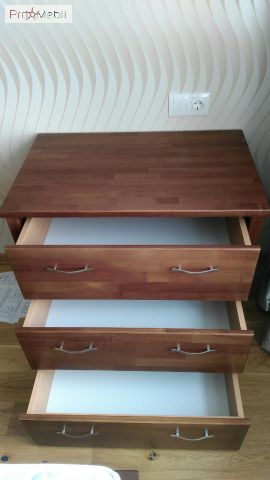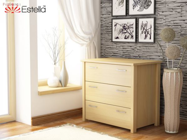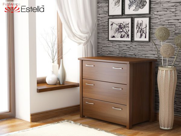 Комод Тесса - деревянный комод в классическом стиле украинской фабрики Эстелла. Выполнен из натурального дерева щита или массива бука на выбор. Выпускается в 8 оттенках, каждый из которых идеально впишется в интерьер комнаты. Простые прямоугольные формы, строгость линий, качественная фурнитура, вместительность и функциональность - главные особенности модели. Комод имеет три выдвижных ящика METABOX в двух вариантах: стандарт или комфорт с системой амортизации BLUM, для мягкого и бесшумного закрывания. Фасад украшают изящные ручки декорированы под серебро. Еще одним преимуществом комода Тесса является его удобство - точно продуманная разборная конструкция позволяет его без труда транспортировать и собирать. Он идеально сочетается с такими кроватями как Афина, Рената или Титан.
