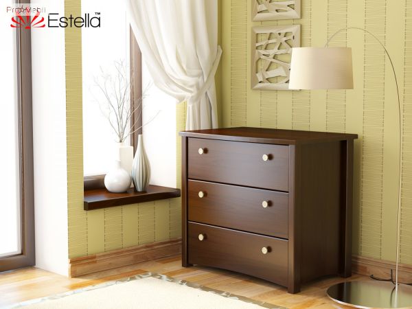Комод Вега - деревянный комод в классическом стиле украинской фабрики Эстелла. Выполнен из натурального дерева щита или массива бука на выбор. Выпускается в 8 оттенках, каждый из которых идеально впишется в интерьер комнаты. Простые прямоугольные формы, округлые линии, качественная фурнитура, вместительность и функциональность - главные особенности модели. Комод имеет три выдвижных ящика METABOX в двух вариантах: стандарт или комфорт с системой амортизации BLUM, для мягкого и бесшумного закрывания. Фасад украшают круглые металлические ручки под бронзу. Еще одним преимуществом комода Вега является его удобство - точно продуманная разборная конструкция позволяет его без труда транспортировать и собирать. Он идеально сочетается с такими кроватями, как Венеция, Диана или Селена-Аури Эстелла.