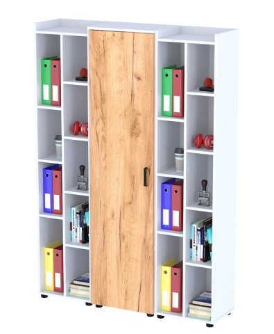 Комплект шкафов Open Office №3 Loft Design — воплощение стиля, функциональности и современного взгляда на организацию рабочего пространства. Его невозможно представить без продуманной эргономики: вместительные открытые секции с множеством ниш позволяют мгновенно находить нужные документы, книги или канцелярские принадлежности, а закрытая зона хранит все, что требует конфиденциальности и аккуратности, скрывая содержимое от посторонних глаз. Прочный каркас шкафа выдерживает внушительные нагрузки — будь то тяжелые папки с отчетами или массивная оргтехника. Регулируемые по высоте ножки обеспечивают безупречную устойчивость даже на неровных полах, а заодно защищают покрытие от царапин. Используемые материалы — экологичные, безопасные и износостойкие ЛДСП с прочным покрытием — гарантируют долговечность и сохранение безупречного внешнего вида. Лаконичный стиль лофт с выразительными древесными оттенками и черной матовой фурнитурой придает комплекту современный, но при этом уютный характер, подчеркивая солидность и вкус его владельца. Комплект шкафов Open Office №3 Loft Design — полноценный элемент интерьера, который помогает создать атмосферу порядка, гармонии и вдохновения в любом офисе. Выбор для тех, кто ценит комфорт, эстетику и безупречную организацию!