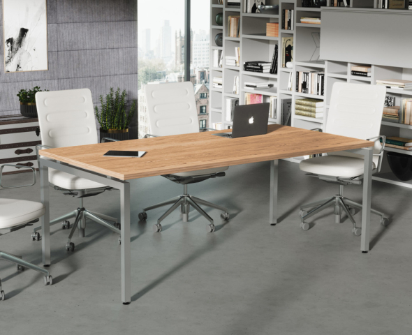 Стол для переговоров Q-200 от компании Loft Design имеет классическую прямоугольную форму. За таким столом удобно проводить совещания как с сотрудниками, разместив их сторонам, так и c важными партнёрами. В этом случае хозяева и посетители располагаются по длинным сторонам друг напротив друга. Стол вмещает до 8-ми человек. Стол Q-200 оснащён прочным и стильным разборным металлическим каркасом с регулируемыми ножками. Столешница стола изготовлена из сдвоенного ламинированного ДСП толщиной 36 мм.