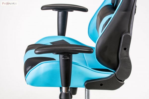Кресло Extreme Race black-blue Special4You - геймерское кресло голубо-черного цвета ТМ Special4You. Материал сидения и спинки - арткожа. Кресло имеет механизм качания, регулируемый под вес пользователя, раскладную спинку и регулируемые подлокотники. Высота регулируется с помощью газлифта. В комплекте с креслом идут поясничный валик и подушка-подголовник. Обе подушки имеют анатомическую форму и крепятся при помощи специальных ремешков.