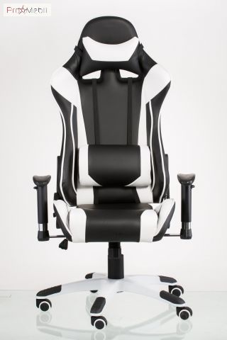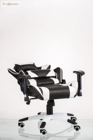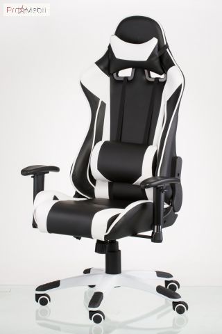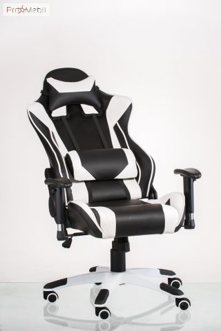 Кресло Extreme Race black-white Special4You - геймерское кресло бело-черного цвета ТМ Special4You. Материал сидения и спинки - арткожа. Кресло имеет механизм качания, регулируемый под вес пользователя, раскладную спинку и регулируемые подлокотники. Высота регулируется с помощью газлифта. В комплекте с креслом идут поясничный валик и подушка-подголовник. Обе подушки имеют анатомическую форму и крепятся при помощи специальных ремешков.