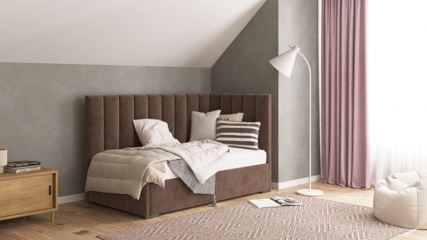 мягкая кровать оснащена мягким изголовьем, может быть с правой или левой стороны |