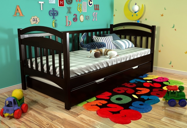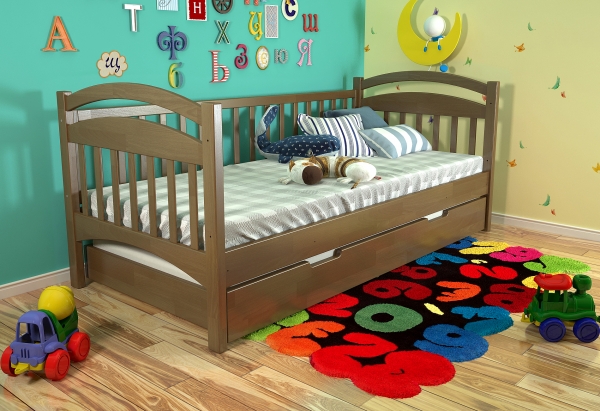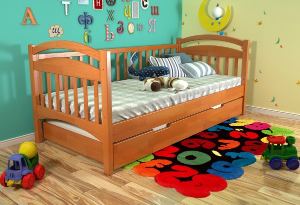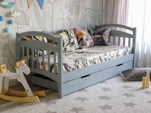 Деревянная кровать Алиса Arbor Drev - это кровать из натурального дерева высшего сорта, произведенная украинской фабрики Арбор Древ. Кровать Alisa Arbor Drev - это изящная, компактная и удобная мебель, которая выступает не только в качестве софы, но и в качестве кровати. Днем она обеспечивает отличное место для отдыха, а вечером предоставляет возможность окунуться в объятия Морфея. Кровать выполнена из натурального дерева сосны и покрыта гипоаллергенным лаком итальянского производства. Алиса Арбор Древ характеризуется элегантной спинкой и подлокотниками; мягкими, покатыми линиями; отсутствием лишних деталей; прочным корпусом; а также возможностью доукомплектовать кровать выдвижными ящиками на выбор: двумя маленькими (фасад дерево, короб ДСП), или сплошным длинным (полностью деревянным) на всю длину кровати, который может быть использован, как дополнительное спальное место (размер спального места 180x75 см и высота матраса дополнительного спального места не должно превышать 14 см). Кровать комплектуется прочными гнутыми ламелями толщиной 5,3 мм и расстоянием между ними 4,5 см. Спальное место под матрас в размере 80х190 см обеспечит комфортный сон для взрослого или ребенка. Матрас приобретается отдельно.