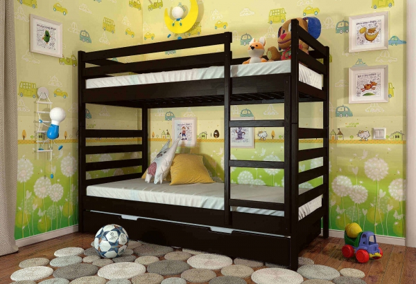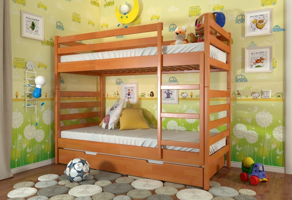 Двухъярусная кровать Рио Arbor Drev - это кровать из натурального дерева высшего сорта, произведенная украинской фабрики Арбор Древ. Кровать Rio Arbor Drev - необыкновенная с уникальным дизайном, прекрасно дополнит интерьер детской, где живут двое детей, оставляя больше места для игр и учебы. Кровать выполнена из натурального дерева щита бука или сосны на выбор, и покрыта гипоаллергенным лаком итальянского производства. Рио Арбор Древ характеризуется высокой защитной спинкой и бортиком по всему периметру на втором ярусе; высоким изголовьем и изножьем; четкими линиями, простыми геометрическими формами; надежной лестницей; прочным корпусом; возможностью разобрать на две отдельные кровати; а также возможностью доукомплектовать кровать выдвижными ящиками на выбор: двумя маленькими (фасад дерево, короб ДСП), или сплошным длинным (полностью деревянным) на всю длину кровати, который может быть использован, как дополнительное спальное место (размер спального места 180x75 см и высота матраса дополнительного спального места не должно превышать 14 см). Кровать комплектуется прочными гнутыми ламелями толщиной 5,3 мм и расстоянием между ними 4,5 см. Спальное место под матрас в размере 80х190 см обеспечит комфортный сон для взрослого или ребенка. Матрас приобретается отдельно.