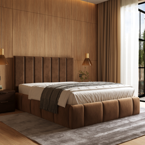 Мягкая кровать Марсель Арбор Древ - спокойная современная эстетика, в которой строгие линии обретают мягкость за счет объемной обивки, создавая выразительный, но сдержанный образ, гармонично вписывающийся в пространство спальни и наполняющий его ощущением уюта и визуального баланса, реализованный украинской фабрикой Арбор Древ с вниманием к каждой детали. Мягкая кровать Марсель Арбор Древ становится центром композиции, вокруг которого выстраивается атмосфера отдыха, где легко замедлиться и почувствовать комфорт. Конструкция выполнена из натурального дерева (щит сосны) в сочетании с МДФ, что обеспечивает надежность, устойчивость и долговечность. Основание и изголовье мягко обтянуты слоями поролона и флизелина, благодаря чему поверхность выглядит аккуратно и приятно ощущается в ежедневном использовании. Вертикальная простежка изголовья и объемные панели основания создают ритмичную геометрию, добавляя интерьеру глубину и современное звучание. Кровать комплектуется прочными гнутыми ламелями толщиной 5,3 мм с расстоянием между ними 4,5 см, обеспечивая правильную поддержку матраса и комфорт во время сна. Спальное место под матрас 180х200 см подходит как для одного человека, так и для пары, создавая удобное пространство для полноценного отдыха. Матрас приобретается отдельно.