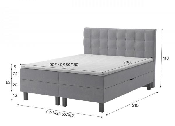 - Ортопедического матраса высотой 22 см и жесткостью 4, состоящий из блока независимых пружин, ортопедической пены и борта ППУ по периметру, обеспечивает максимальный уровень комфорта, правильное распределение нагрузки на тело;