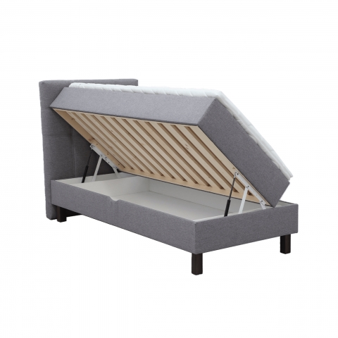 - Кровати 90х200 Logan с основанием из ламинированное ДСП толщиной 16 мм, дном из ламинированного ХДФ, усиленное брусом, для умеренно жесткой и надежной поддержки, а также боковым подъемным механизмом с коробом для белья с возможность установки открытия с разных сторон кровати (слева / справа). Кровать обшита плотной тканью с оттенками на выбор и мягким стеганым изголовьем;