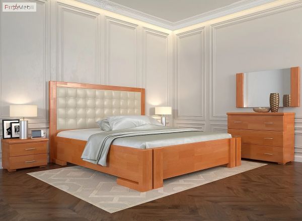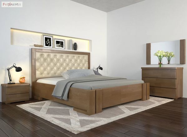 Деревянная кровать Амбер Arbor Drev - из натурального дерева высшего сорта, произведенная украинской фабрикой Арбор Древ. Кровать Amber Arbor Drev - волшебная и оригинальная, но в то же время комфортная современная кровать идеально подчеркнет интерьер спальной комнаты. Кровать выполнена из натурального дерева щита бука или сосны на выбор, и покрыта гипоаллергенным лаком итальянского производства. Амбер Арбор Древ характеризуется высоким мягким изголовьем, которое придаст невероятный комфорт при чтении книги, просмотре фильма или работе за ноутбуком; массивным изножьем с прямоугольными накладками, которые плавно переходят в интересные выгнутые ножки; подъемным механизмом: стандартным фанерным с коробом для хранения вещей. Кровать комплектуется прочными гнутыми ламелями толщиной 5,3 мм и расстоянием между ними 4,5 см. Спальное место под матрас в размере 180х200 см обеспечит комфортный сон для взрослого или ребенка. Матрас приобретается отдельно.